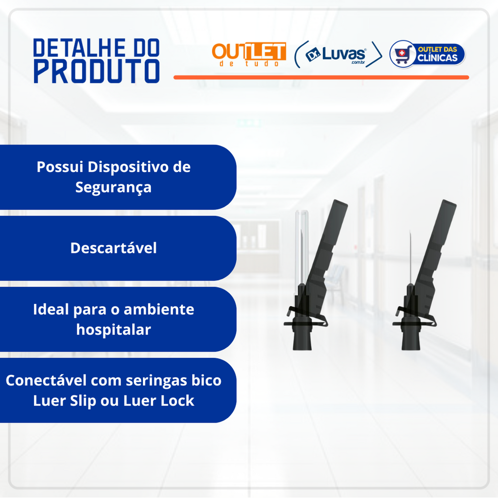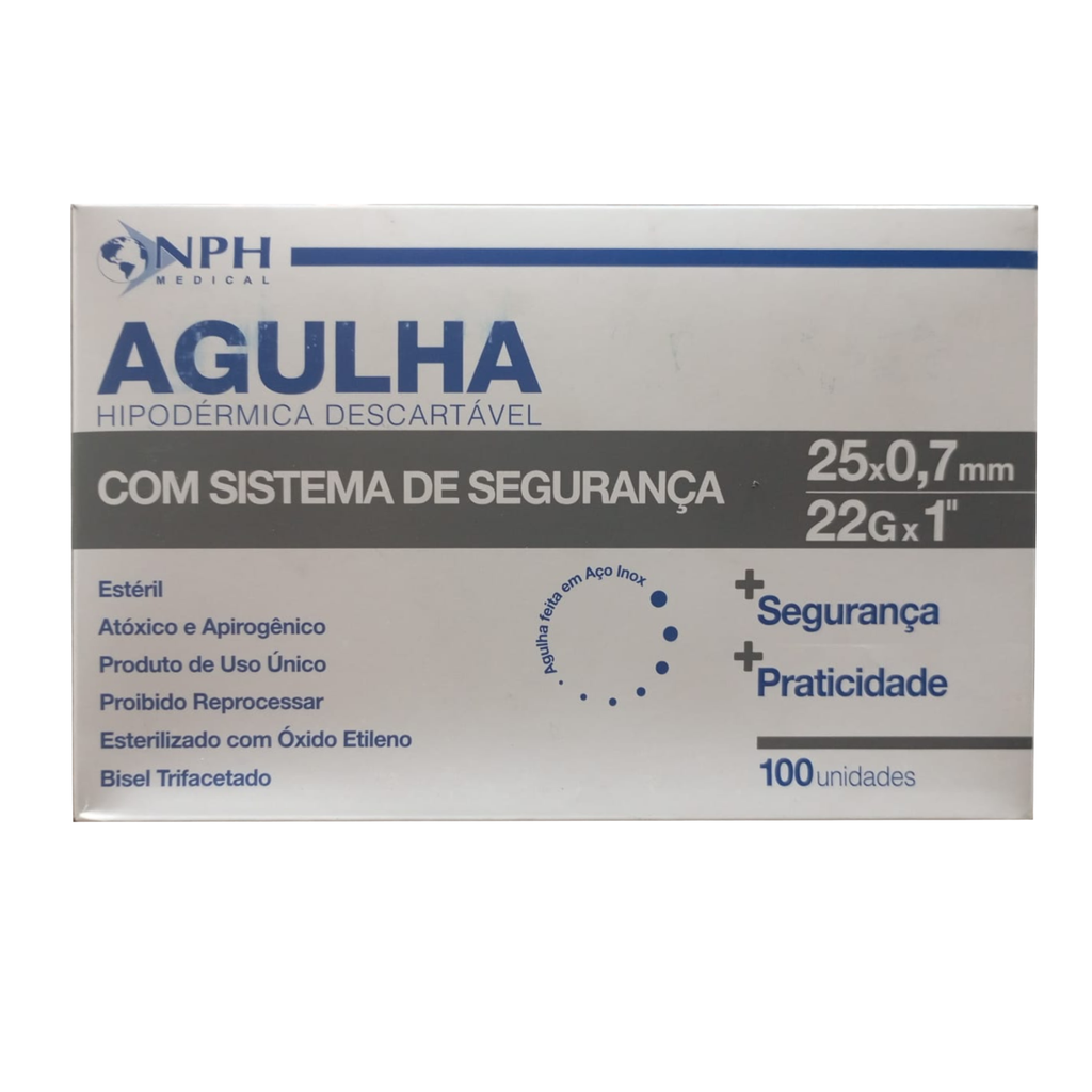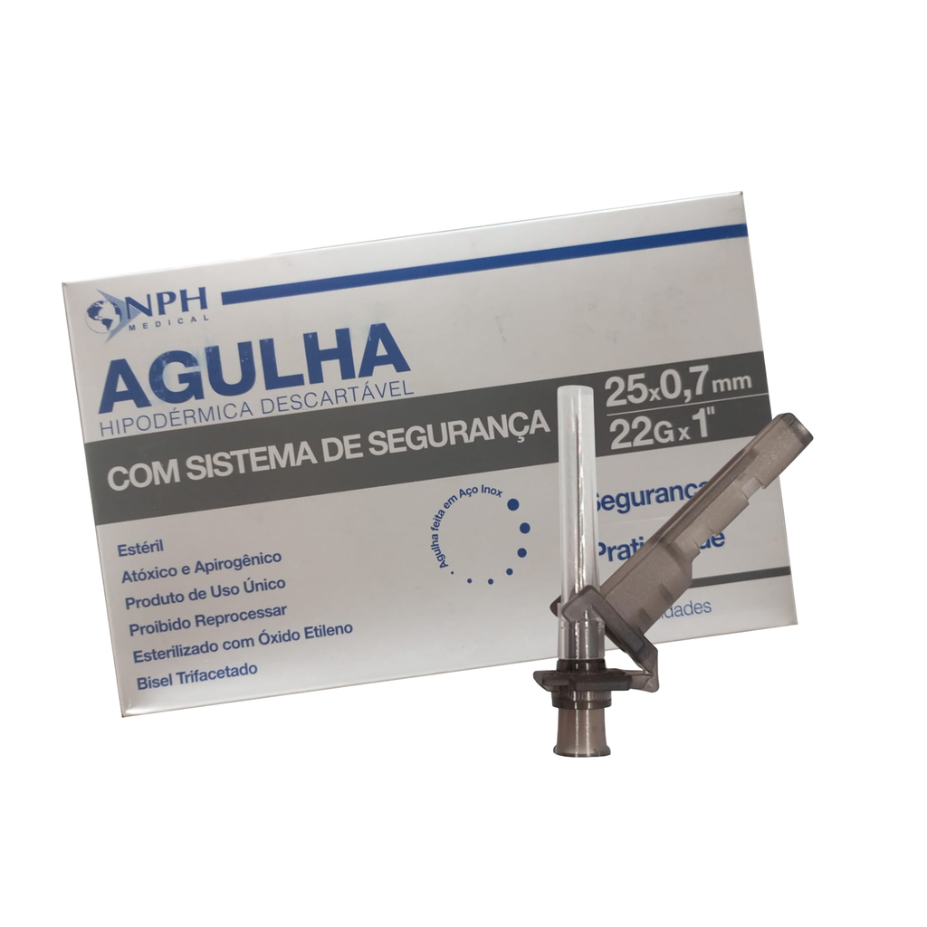 Agulha com dispositivo de segurança 25x0,70mm 100un - NPH Medical