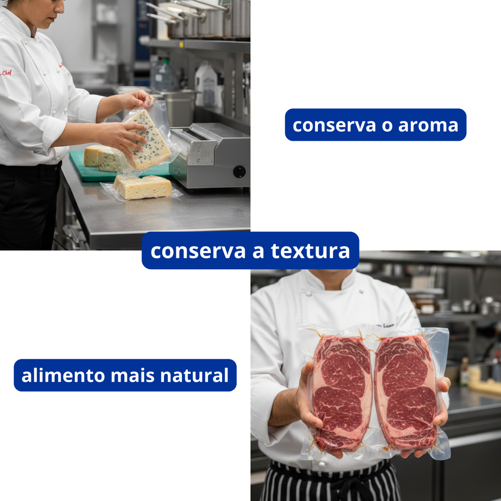 - Conserva o aroma e a textura natural dos alimentos.