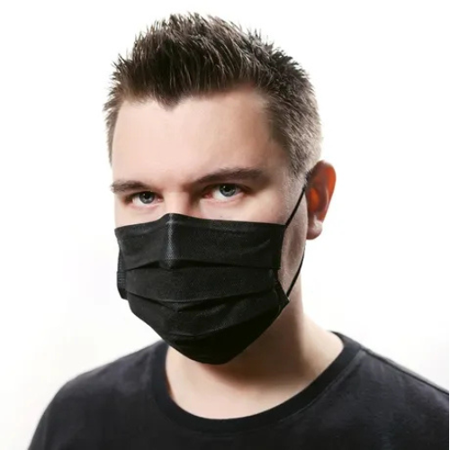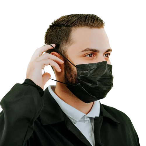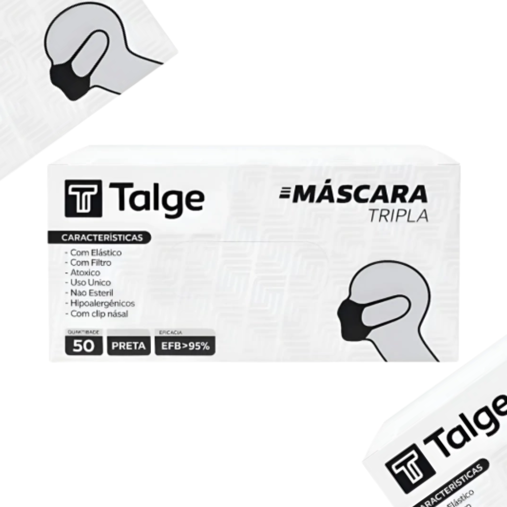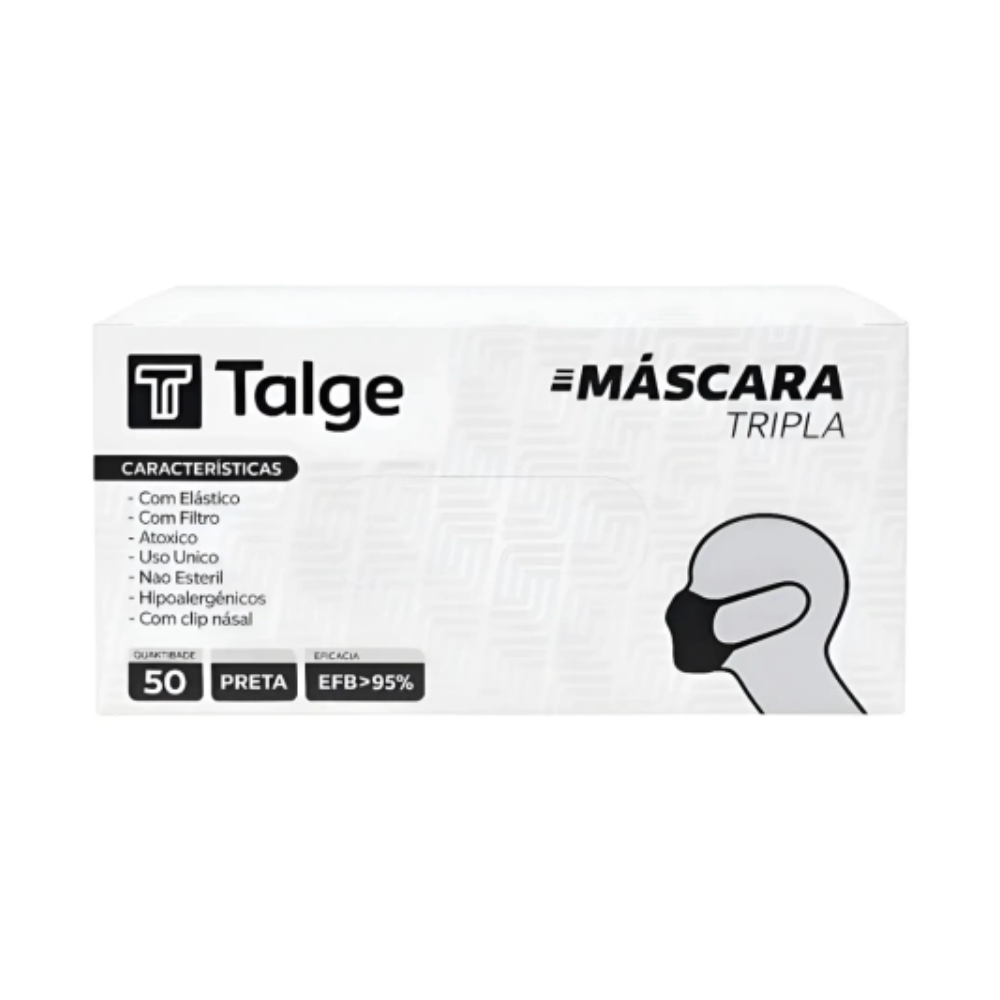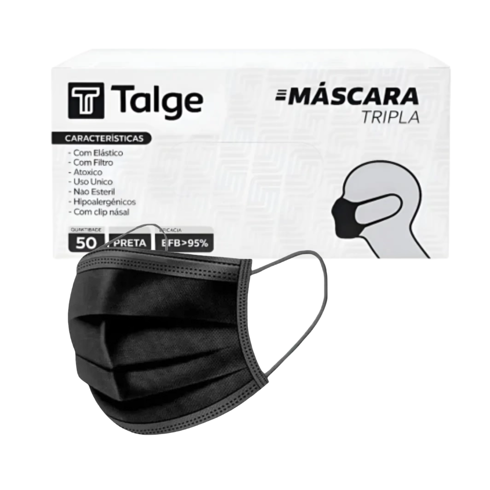 Máscara Cirúrgica Tripla TNT Preta Com Elástico 50un - Talge