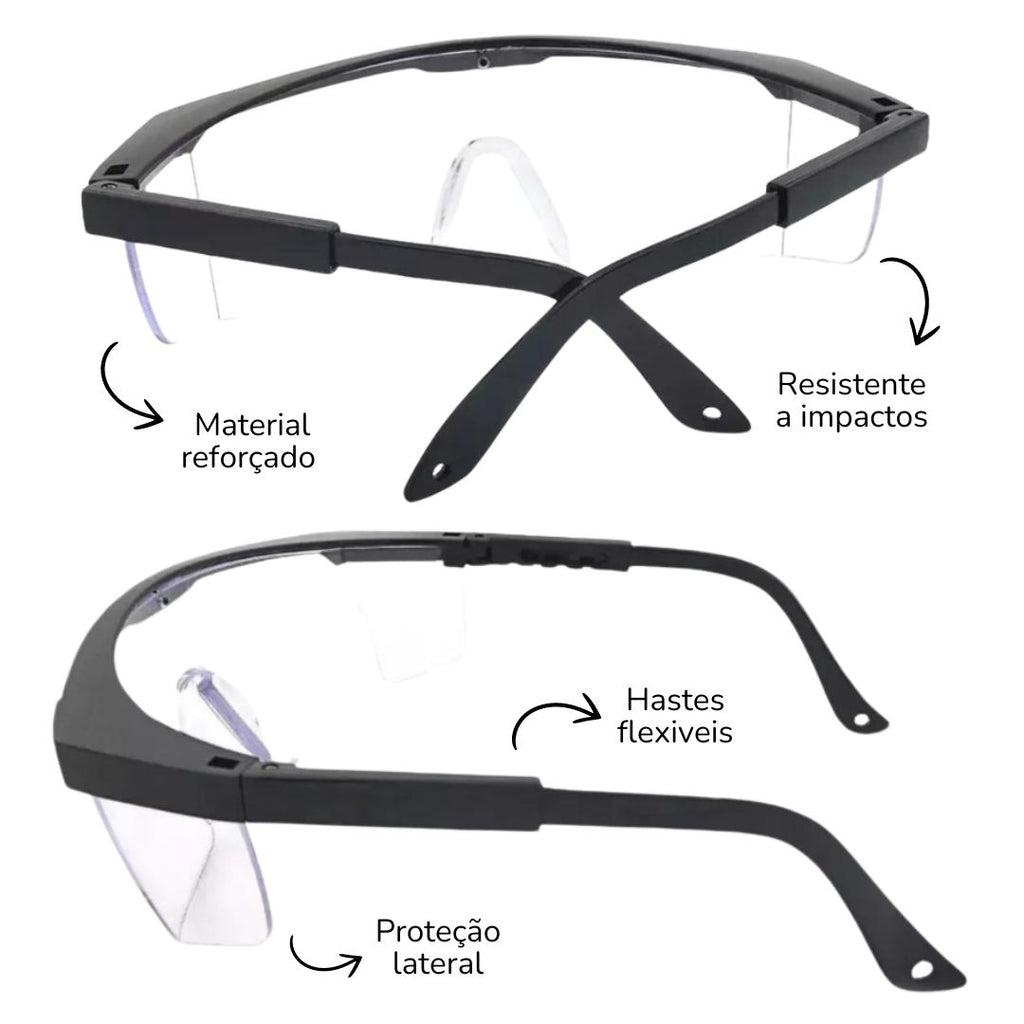 - Proteção contra lesões no globo ocular, provocados por poeira, produtos químicos ou partículas.